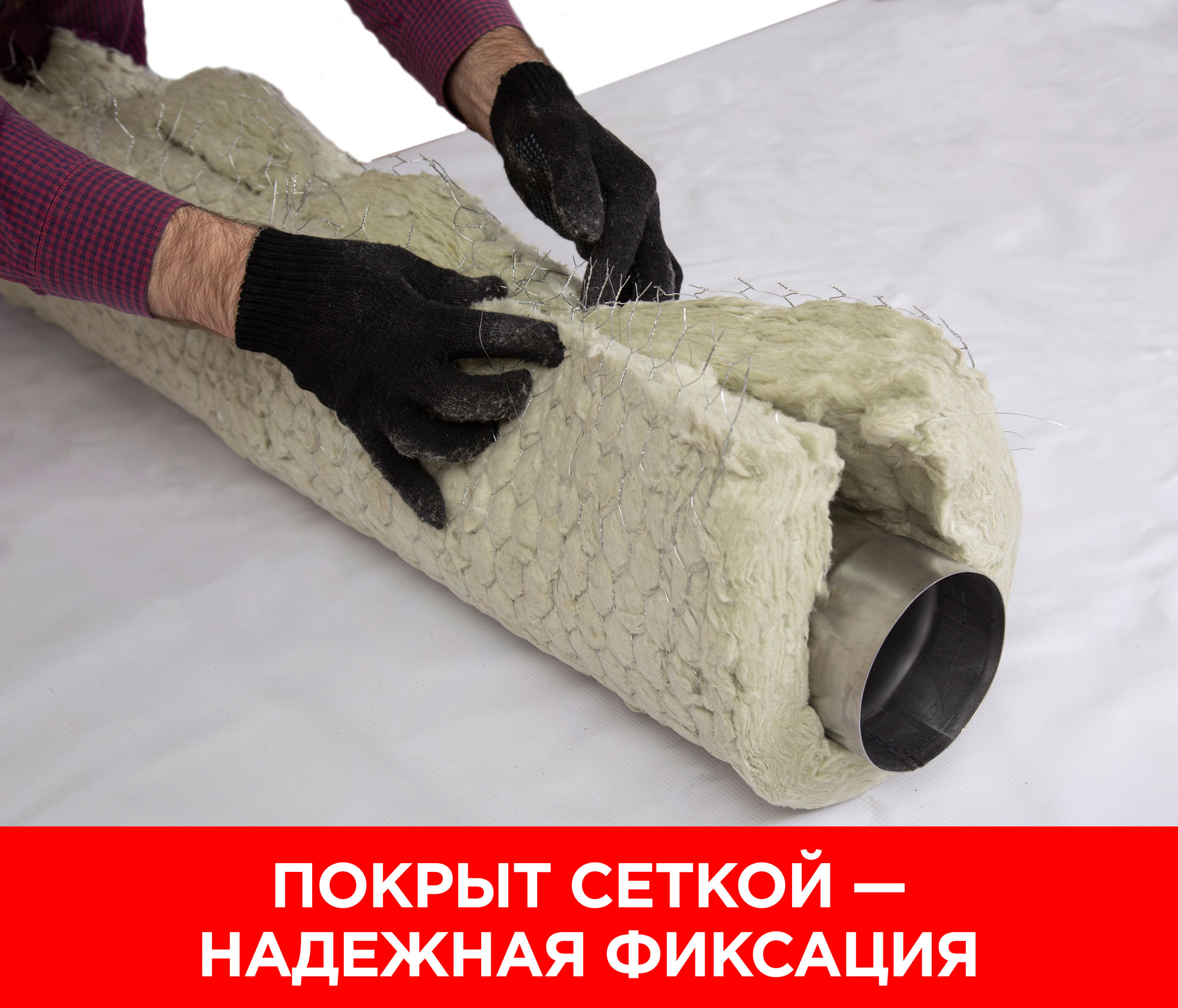 • Изоляция прошита проволокой и покрыта стальной сеткой, что обеспечивает надежную фиксацию на поверхности трубы.