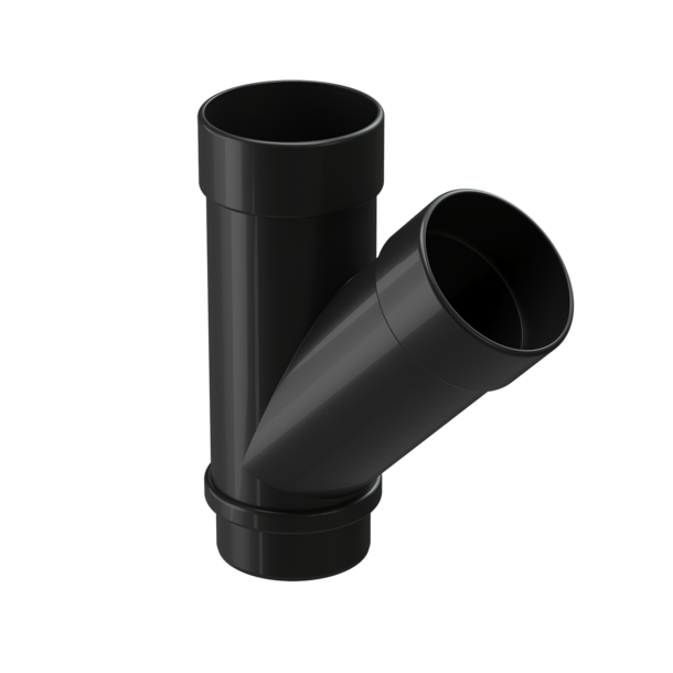 Тройник помогает две трубы свести в одну. Есть вывод для второй трубы, которая будет подведена под 45 градусов.